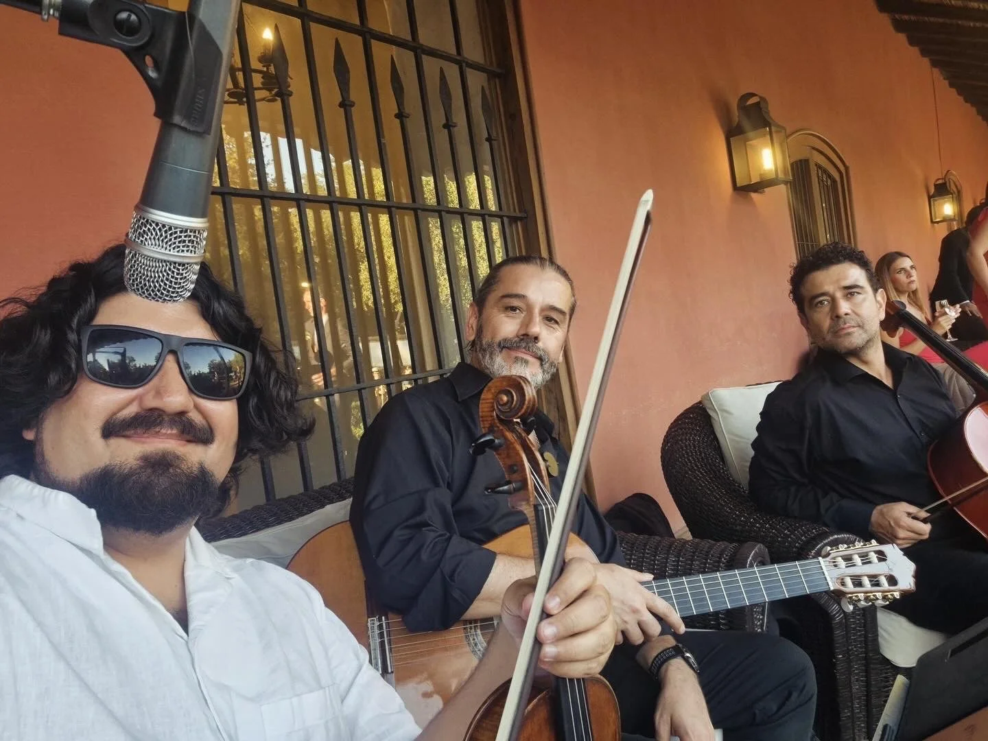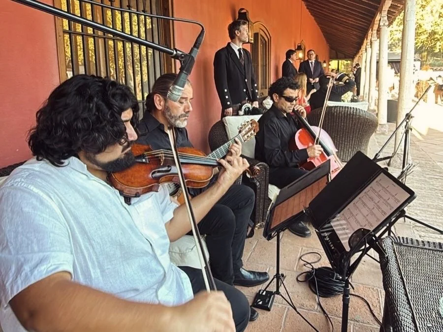 Acompañamos en la iglesia con cuarteto de cuerdas y soprano y en el cóctel con trío de guitarra, violín y cello.